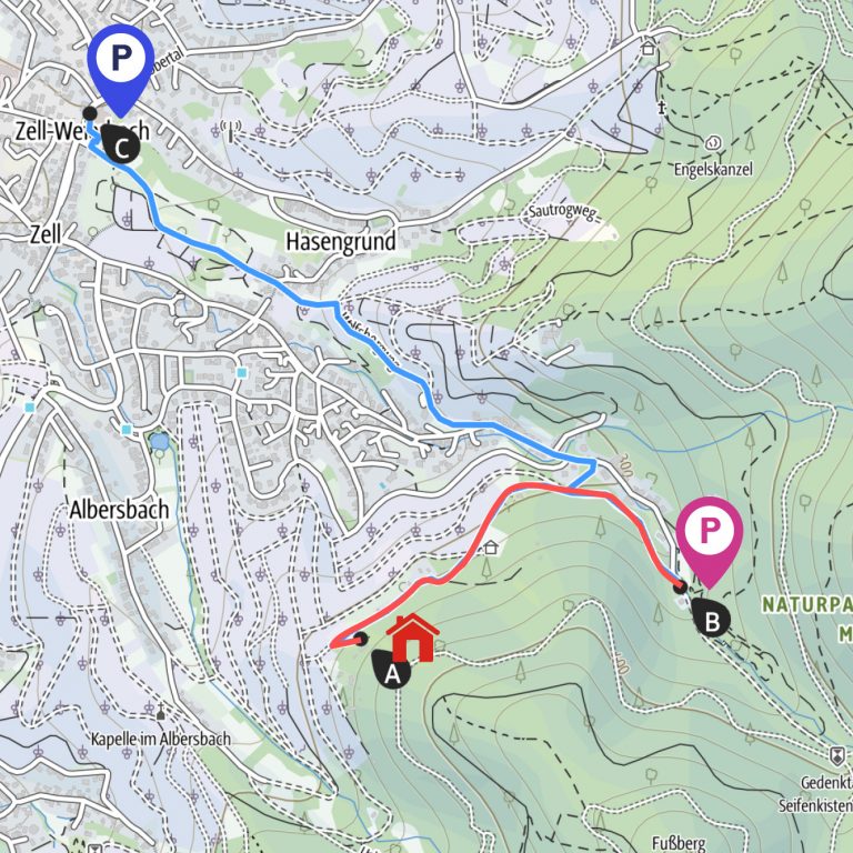Die St. Ursula-Hütte bietet aufgrund der idyllischen Lage in Mitten der Weinberge keine unmittelbaren Parkplätze. Das Be- und Entladen von Gästen und Gepäck ist aber selbstverständlich möglich. Wir empfehlen das Auto zu parken und die 1,2 km als gemütlichen Einstieg zu Fuß zu gehen. Parkmöglichkeiten finden sich in der näheren Umgebung: